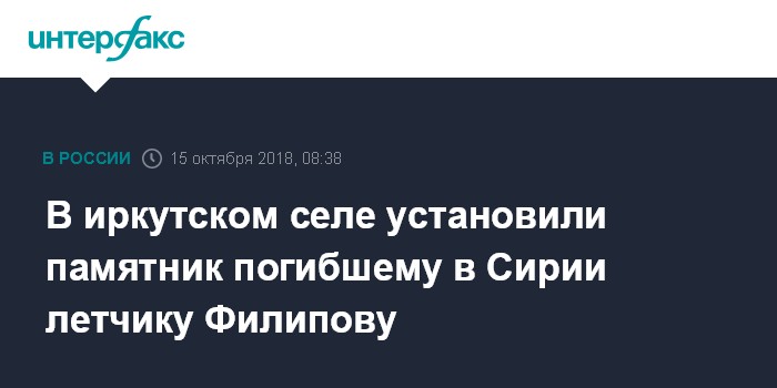 В Москве заочно арестовали троих обвиняемых в гибели лётчика Филипова в СирииЧитать подробнее"Филипов не родился, не вырос, и не служил в Черемхово. Мы поставили ему памятник как Герою России, восхищаясь его мужеством и его подвигом. Это показатель характера, самоотверженности русского человека. Мы решили так продолжить нашу национальную традицию чествования героев. Ведь раньше ставили памятники тому же Матросову, Павке Корчагину, не привязываясь к их биографии", - сказал агентству "Интерфакс" мэр Черемхово Вадим Семенов.