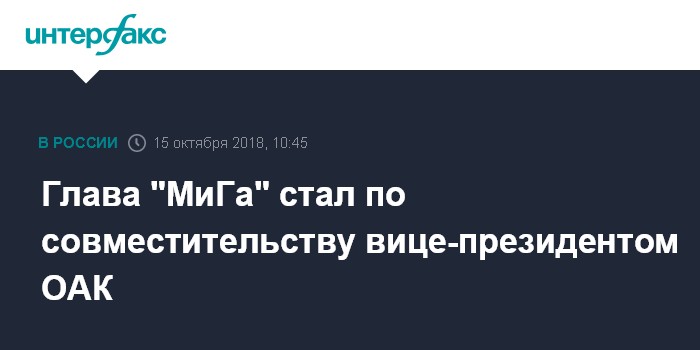Глава "МиГа" стал по совместительству вице-президентом ОАК
