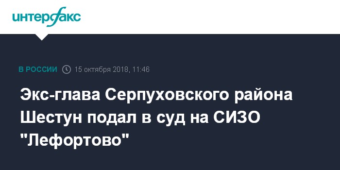 Экс-глава Серпуховского района Шестун подал в суд на СИЗО "Лефортово"