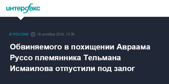 Обвиняемого в похищении Авраама Руссо племянника Тельмана Исмаилова отпустили под залог