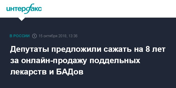 Москва. 15 октября. INTERFAX.RU - Группа депутатов Госдумы внесла на рассмотрение палаты законопроект, усиливающий уголовную ответственность за распространение фальсифицированных лекарств и БАДов через интернет.
