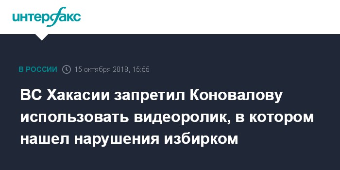 ВС Хакасии запретил Коновалову использовать видеоролик, в котором нашел нарушения избирком