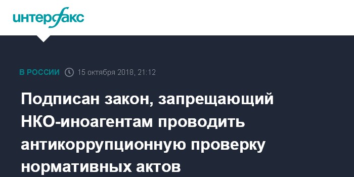 Подписан закон, запрещающий НКО-иноагентам проводить антикоррупционную проверку нормативных актов