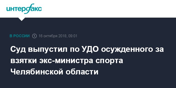 Суд выпустил по УДО осужденного за взятки экс-министра спорта Челябинской области