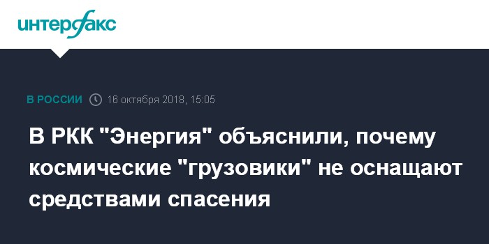 Москва. 16 октября. INTERFAX.RU - Грузовые транспортные корабли нецелесообразно оснащать средствами аварийного спасения, аналогичными тем, что ставятся на корабли "Союз МС", заявил заместитель главного конструктора перспективных космических комплексов ракетно-космической корпорации (РКК) "Энергия" Игорь Хамиц.