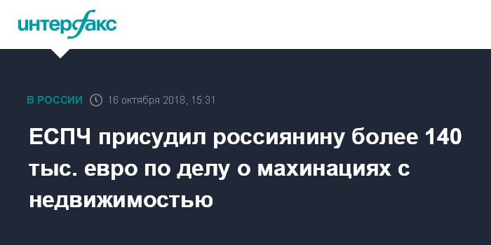 ЕСПЧ присудил россиянину более 140 тыс. евро по делу о махинациях с недвижимостью