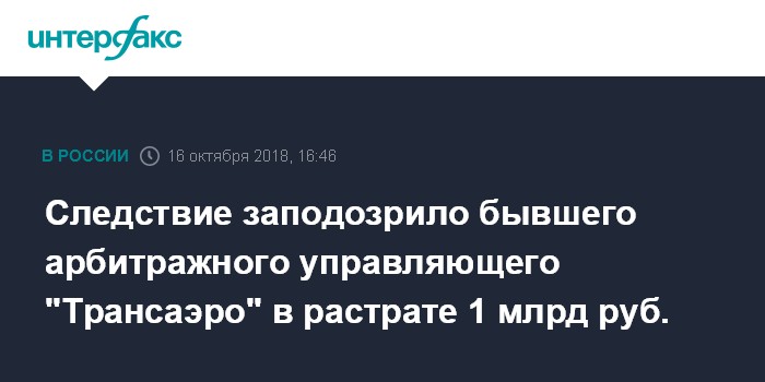 Следствие заподозрило бывшего арбитражного управляющего "Трансаэро" в растрате 1 млрд руб.