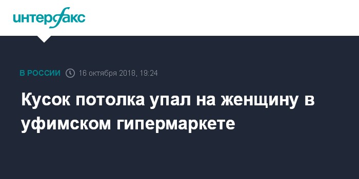 Москва. 16 октября. INTERFAX.RU - Жительница Уфы получила травмы в результате обрушения на нее части потолочной конструкции в гипермаркете, сообщила пресс-служба Управления гражданской защиты города во вторник.