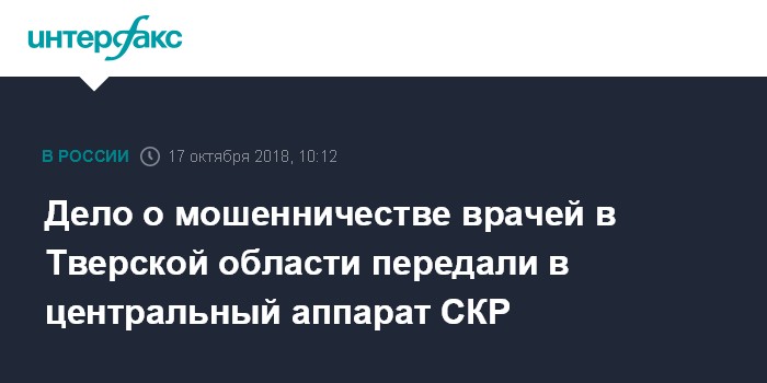 Дело о мошенничестве врачей в Тверской области передали в центральный аппарат СКР