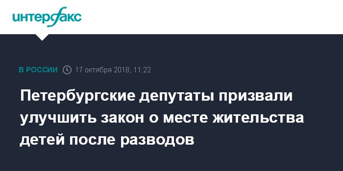 Москва. 17 октября. INTERFAX.RU - Законодательное собрание Санкт-Петербурга в среду обратилось к президенту РФ Владимиру Путину с просьбой усовершенствовать закон, регулирующий исполнение решений судов о месте проживания детей после развода родителей.