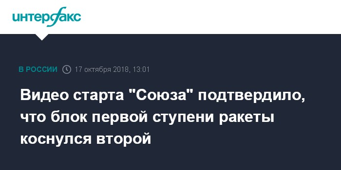 Видео старта "Союза" подтвердило, что блок первой ступени ракеты коснулся второй