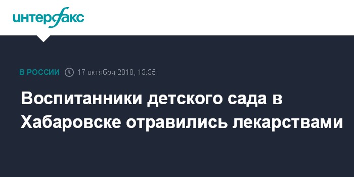 Москва. 17 октября. INTERFAX.RU - Следователи СУ СКР по Хабаровскому краю начали проверку после размещенного в СМИ сюжета об отравлении лекарствами воспитанников одного из детских садов в Индустриальном районе Хабаровска, сообщается на сайте ведомства.