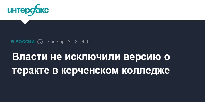 Москва. 17 октября. INTERFAX.RU - Версия о теракте в керченском колледже не исключается, заявил пресс-секретарь президента РФ Дмитрий Песков.