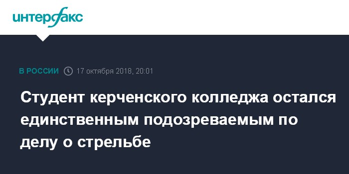 Москва. 17 октября. INTERFAX.RU - Молодой человек, который подозревается в нападении на керченский колледж, действовал один, информации о сообщниках у следствия пока нет, сообщил журналистам представитель оперативного штаба на месте трагедии.
