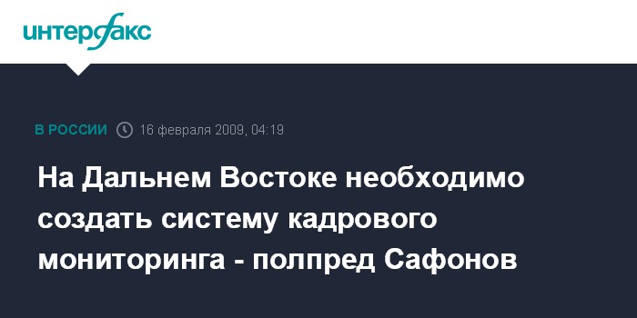 На Дальнем Востоке необходимо создать систему кадрового мониторинга - полпред Сафонов