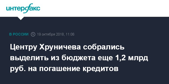 В конце июня Совет Федерации вслед за Госдумой одобрил поправки в бюджет, согласно которому центру имени Хруничева уже было выделено около 8 млрд рублей также на погашение кредитов и уплату процентов по ним.