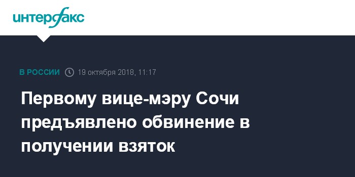 Первому вице-мэру Сочи предъявлено обвинение в получении взяток