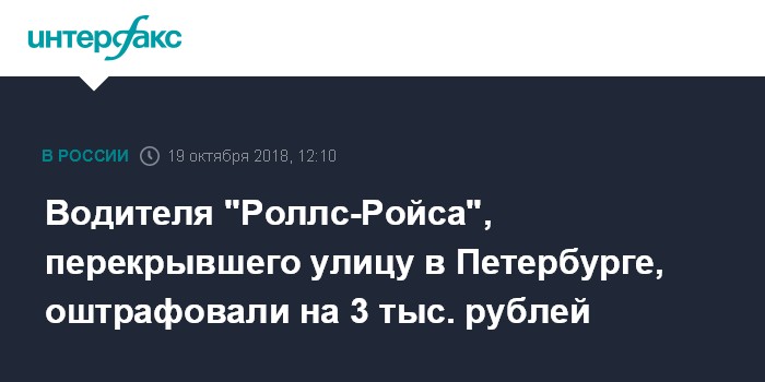 Москва. 19 октября. INTERFAX.RU - УГИБДД по Санкт-Петербургу и Ленинградской области составило административный протокол в отношении водителя "Роллс Ройса", преградившего путь транспорту в центре северной столицы днем в четверг.