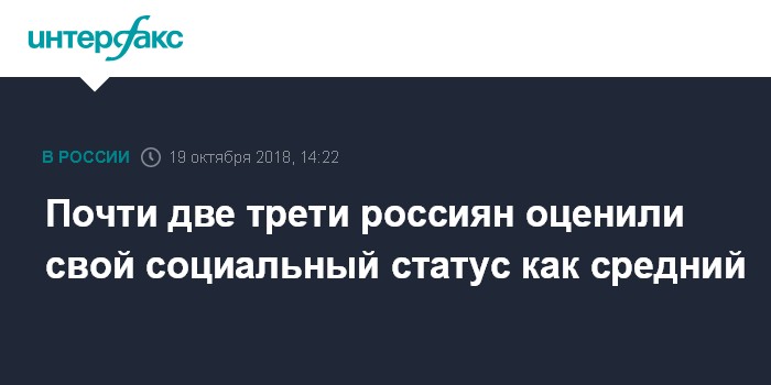 Москва. 19 октября. INTERFAX.RU - Почти две трети граждан РФ считают, что занимают среднее положение в обществе, свидетельствуют данные опроса ВЦИОМ, поступившие в пятницу в "Интерфакс".
