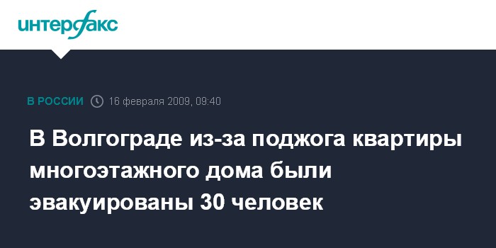 Москва. 16 февраля. INTERFAX.RU - В Тракторозаводском районе Волгограда в результате пожара в многоэтажном доме один человек пострадал, 30 были эвакуированы.