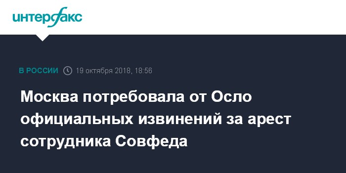 Москва потребовала от Осло официальных извинений за арест сотрудника Совфеда