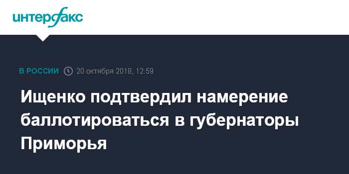 Ищенко подтвердил намерение баллотироваться в губернаторы Приморья
