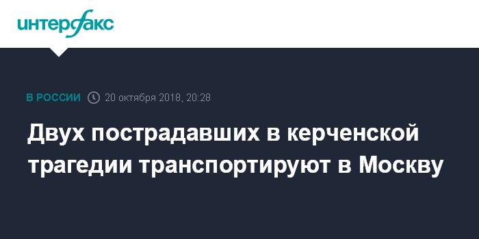 Двух пострадавших в керченской трагедии транспортируют в Москву