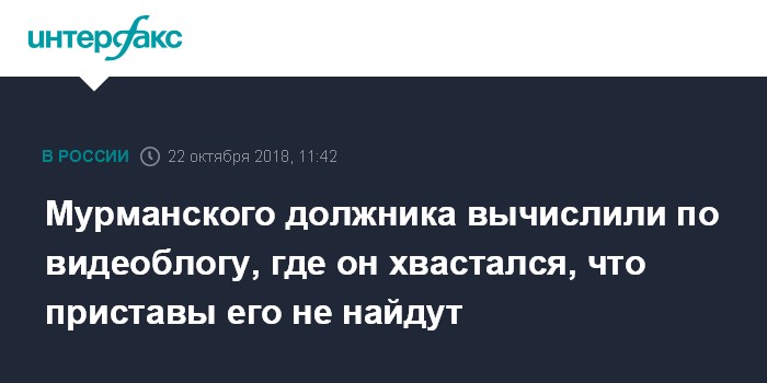 Москва. 22 октября. INTERFAX.RU - Судебные приставы Кольского района Мурманской области смогли найти должника по алиментам благодаря его видеоблогу, сообщила в понедельник пресс-служба регионального УФССП.