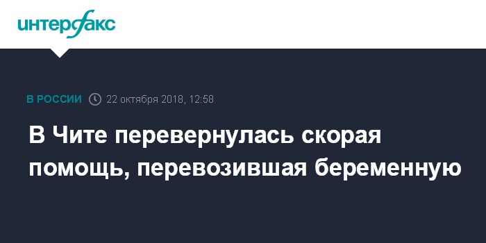 Москва. 22 октября. INTERFAX.RU - В Чите утром 22 октября произошло ДТП с участием машины скорой помощи, которая везла в тот момент беременную женщину.