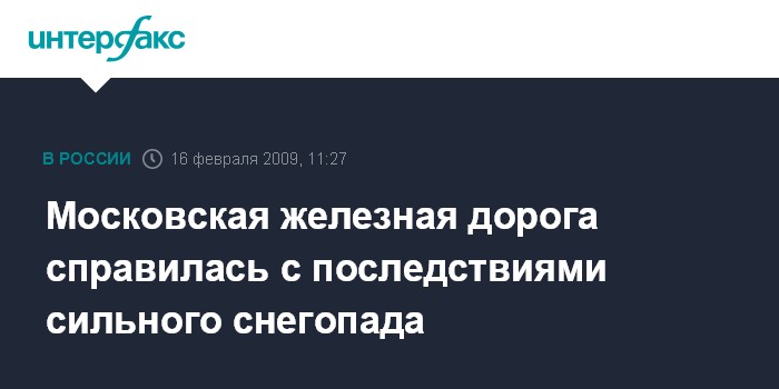 "Работы по уборке проходили в круглосуточном режиме. На всех отделениях дороги были созданы необходимые условия для работы и нормального отдыха монтеров путей и путевых рабочих", - подчеркнули в службе по связям с общественностью. Там добавили, что сильный снегопад не застал врасплох работников МЖД и не оказал влияния на график движения поездов.