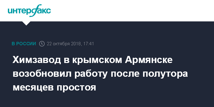 Химзавод в крымском Армянске возобновил работу после полутора месяцев простоя