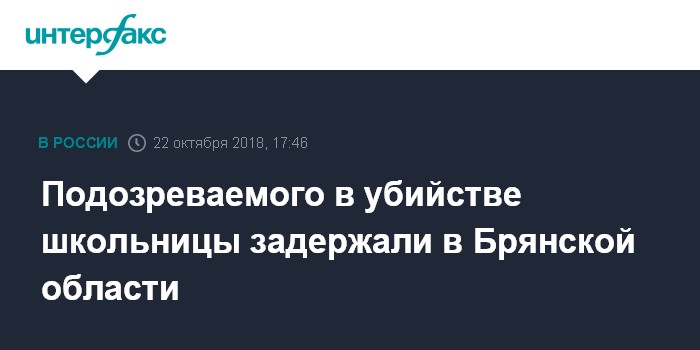 Москва. 22 октября. INTERFAX.RU - В Брянской области задержан подозреваемый в убийстве 15-летней школьницы, сообщает в понедельник пресс-служба СУ СК РФ по Брянской области.