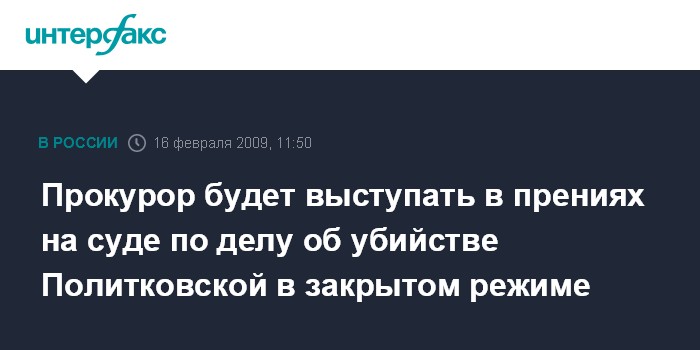 Москва. 16 февраля. INTERFAX.RU - Сторона обвинения по делу об убийстве обозревателя "Новой газеты" Анны Политковской будет выступать в прениях в закрытом режиме.