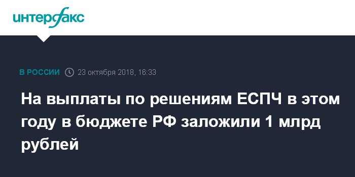 В частности, предлагается предусмотреть "увеличение с 600 млн рублей до 1 млрд рублей объема бюджетных ассигнований, зарезервированных на выплату в 2018 году денежных компенсаций истцам в соответствии с решениями Европейского суда по правам человека".