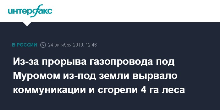 Москва. 24 октября. INTERFAX.RU - Следственные органы начали проверку по факту прорыва и возгорания магистрального газопровода во Владимирской области, сообщает пресс-служба местного управления СКР.