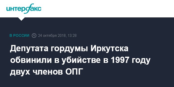 Как сообщалось, во вторник суд в Чите арестовал депутата думы Иркутска, который был задержан 18 октября в Иркутске по подозрению в убийстве в 1997 году двух мужчин, которые входили в состав преступной группировки.