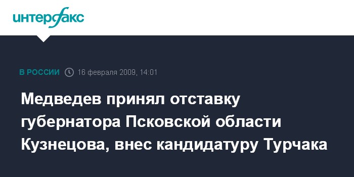Медведев принял отставку губернатора Псковской области Кузнецова, внес кандидатуру Турчака