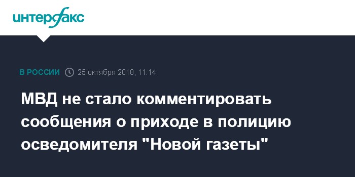 МВД не стало комментировать сообщения о приходе в полицию осведомителя "Новой газеты"