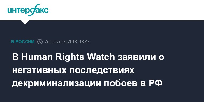 В Human Rights Watch заявили о негативных последствиях декриминализации побоев в РФ