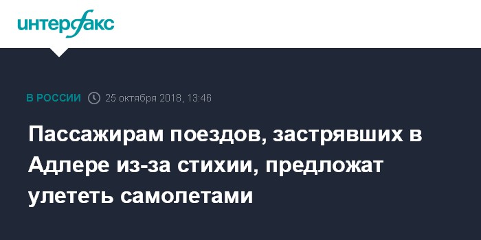 В частности, прорабатывается вопрос вывоза самолетами пассажиров поездов, выехавших из Адлера в Петербург, Самару, Пермь и Ростов-на-Дону.