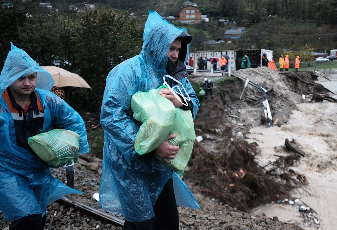 В ночь на 25 октября погодные условия ухудшились. В результате на перегоне Греческий-Туапсе смыло насыпь протяженностью 200 метров, на станции Туапсе и перегоне Греческий-Кривенковская вода затопила пути, на станции Водопадный сошел сель.