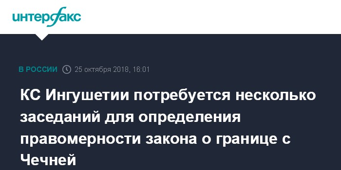 Москва. 25 октября. INTERFAX.RU - Конституционный суд Ингушетии обнародует свое решение о правомерности закона о границах с Чечней по итогам нескольких заседаний, сообщил "Интерфаксу" представитель суда.