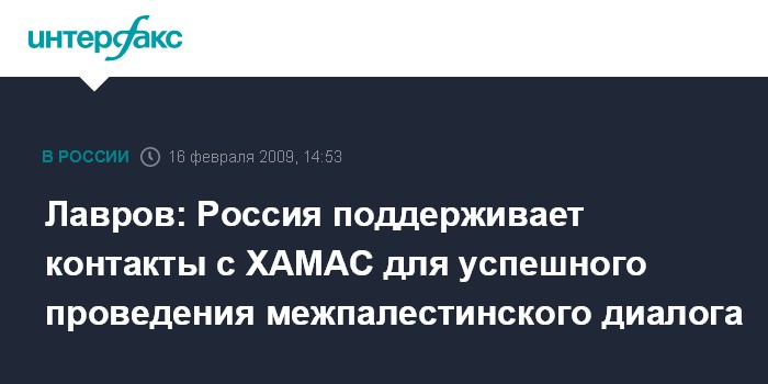 Москва. 16 февраля. INTERFAX.RU - Москва не прекращала свои контакты с движением ХАМАС, напротив, они продолжаются и в эти дни, заявляет глава МИД РФ Сергей Лавров.