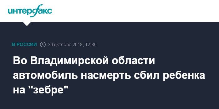 Москва. 26 октября. INTERFAX.RU - Семилетний мальчик погиб под колесами легкового автомобиля на пешеходном переходе во Владимирской области, сообщили "Интерфаксу" в пресс-службе УМВД по региону.