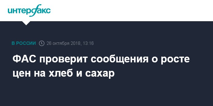 ФАС проверит сообщения о росте цен на хлеб и сахар