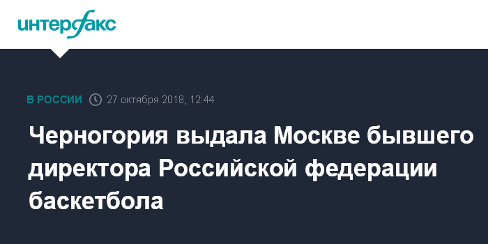 Черногория выдала Москве бывшего директора Российской федерации баскетбола