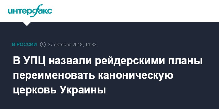 "По законодательству нашей страны нельзя дублировать юридическое название или изменять его. Невозможно силой изменить название нашей церкви. Какие бы законы ни принимали, они не будут иметь силы, потому что любой апелляционный суд, я уже не говорю о Европейском суде, отменит такое решение. Поэтому эти попытки забрать у нас название является чистой воды рейдерством", - сказал замглавы отдела внешних церковных связей УПЦ МП протоиерей Николай Данилевич, которого цитирует информационно-просветительский отдел УПЦ.