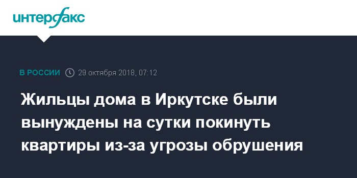 Жильцы дома в Иркутске были вынуждены на сутки покинуть квартиры из-за угрозы обрушения