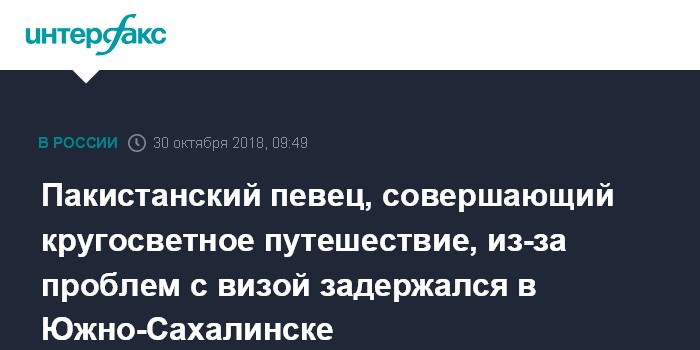 Пакистанский певец, совершающий кругосветное путешествие, из-за проблем с визой задержался в Южно-Сахалинске