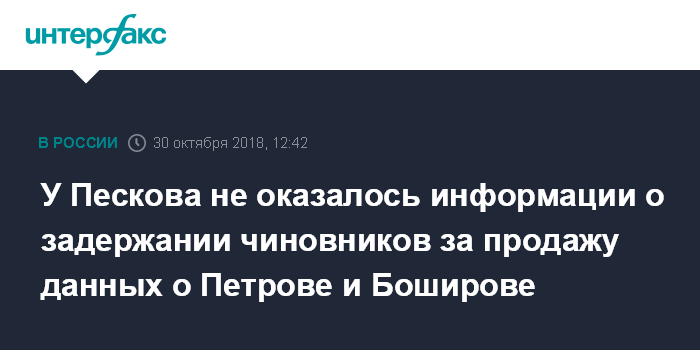 У Пескова не оказалось информации о задержании чиновников за продажу данных о Петрове и Боширове